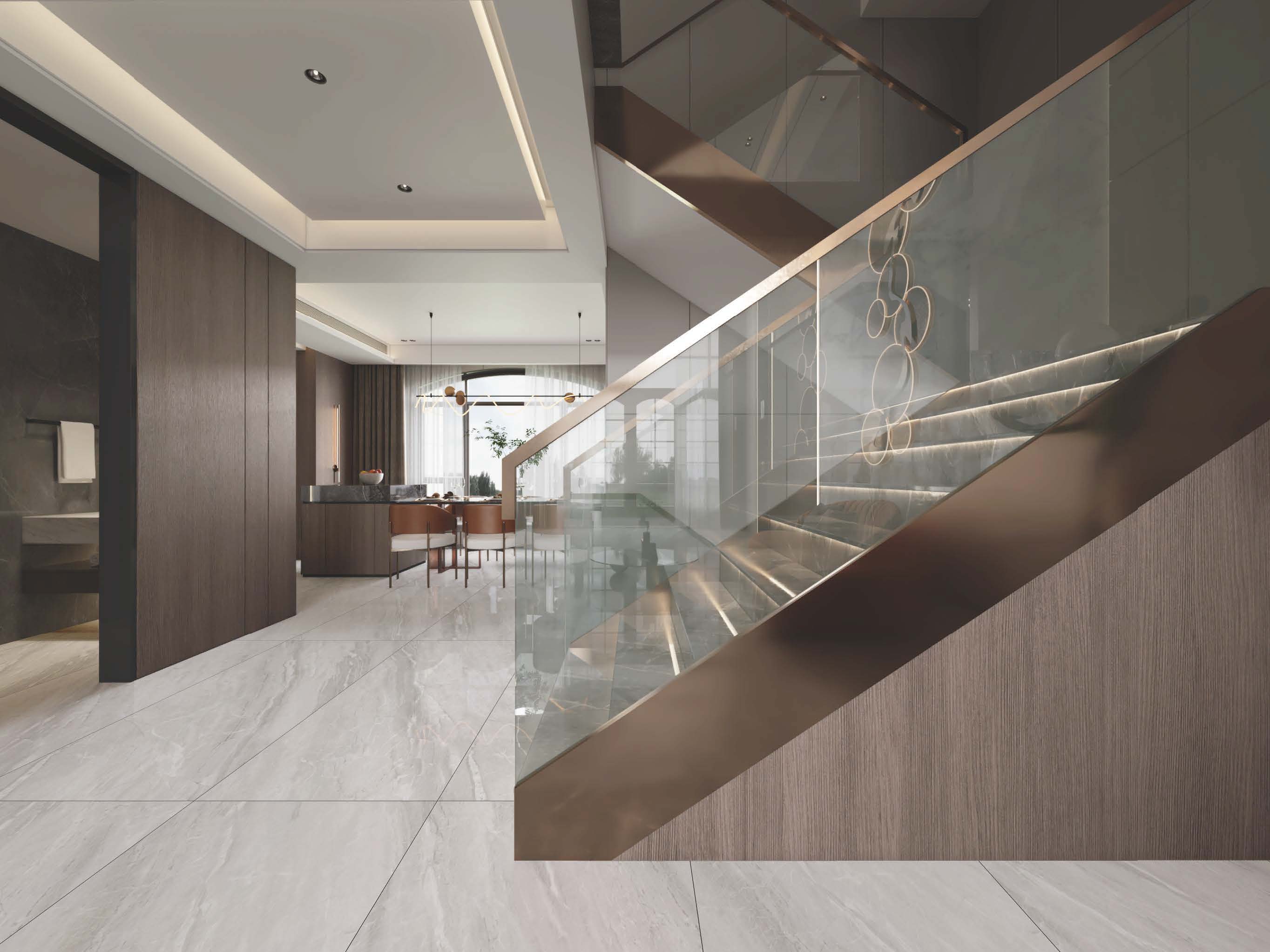 每款瓷砖均应用8-12款色釉,通过最新的5D喷墨渗透技术,让瓷砖的纹理层次更丰富,线条纹理更显自然逼真。